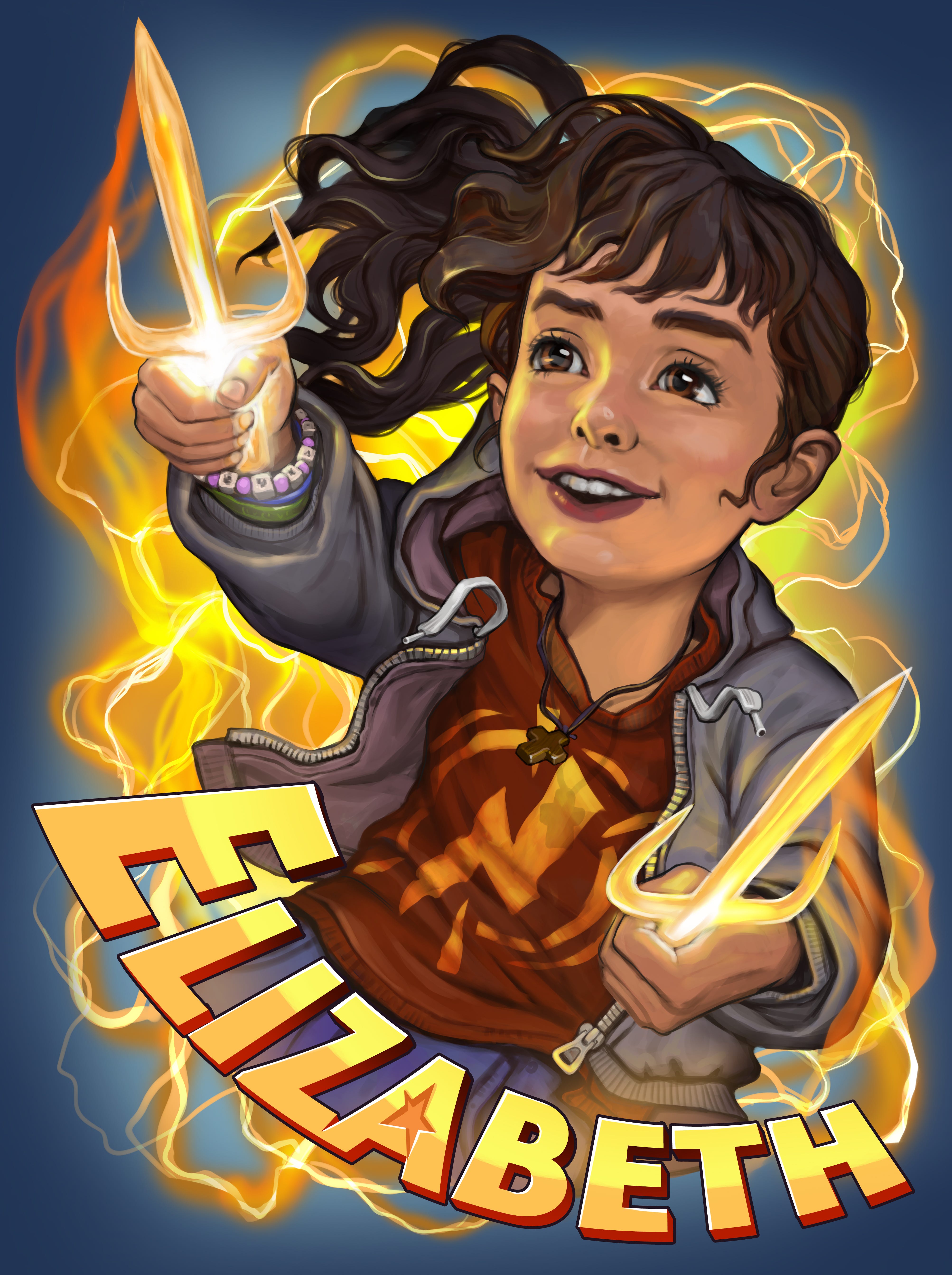 The young farmer felt those fizzy sensations expand. It seemed to become magnetic. She immediately found that she could spread this sensation throughout her body by her very whims. Haley willed it up her torso and into her right arm. As if on instinct, she mounted the potato gun to her gauntlet, raised her right arm and funneled the energy into the gun. A blue glow began to emit from inside the barrel.